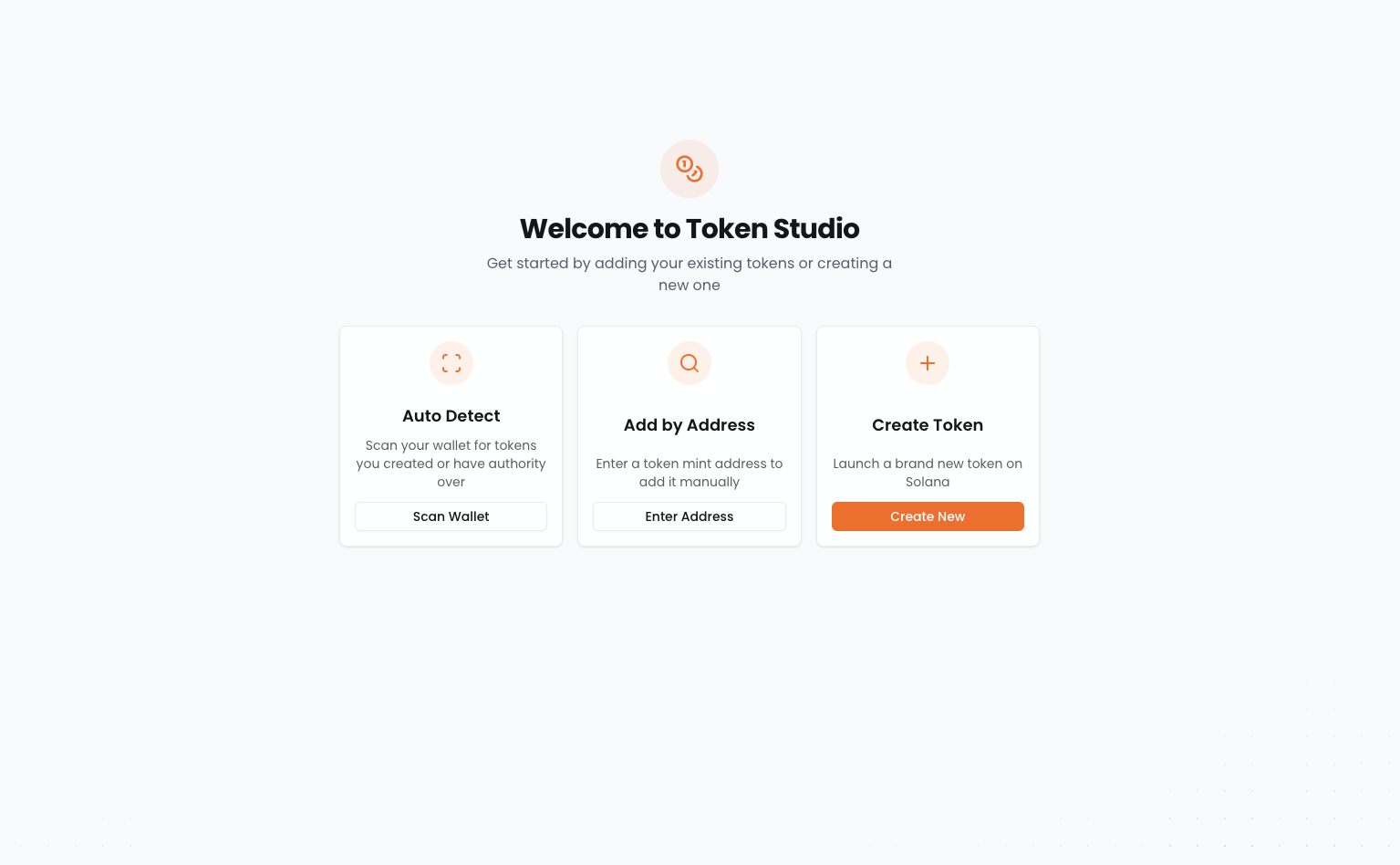 | Top actions | Import Token, Create Token | Adds an existing token or makes a new one |